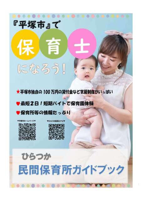 保育士サポート制度や、平塚市内の園マップ、27法人(全48園)の魅力照会など、就活・転職に嬉しい情報がたっぷり詰まった一冊です!
